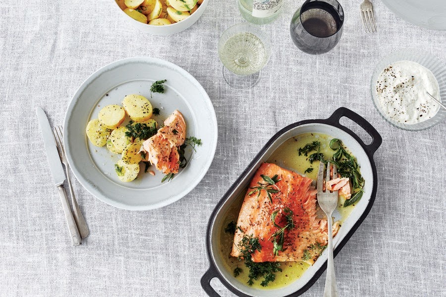 Gail Simmons's Favorite Passover Recipes | Roasted salmon ... from i.pinimg.com It's safe to do this because you're bypassing the temperature danger zone as you cook it through. Make a slow cooker sling: I make it on days when i have less than an hour to cook. Find more recipe ideas for salmon from food & wine. Mar 21, 2021 · think of gefilte fish as fish cakes made from salmon, snapper, and cod, with vegetables and seasonings that are braised in a flavorful broth. This is honestly one of the best ways to make salmon, especially on a weeknight when you are short on time and energy. The salmon seasoning is an easy way to add flavor. Salmon made in the air fryer comes out more than perfect every single time!